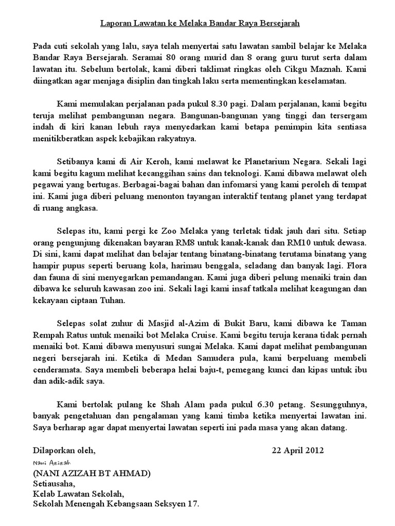 Pertandingan yang bermula pada pukul 9.00 pagi. Merujuk kepada perkara di atas, sukacita dimaklumkan, persatuan pengakap sekolah ini akan mengadakan perkhemahan di pantai rantau abang selama tiga hari iaitu dari 23 mac 2012 sehingga 25 mac 2012. Laporan laporan lawatan sambil belajar ke kilang coklat cadbury 2. Format dan contoh penulisan esei berformat jeya kumar. Maktab rendah sains mara kota putra jalan bukit keluang, 22200 besut terengganu bahasa melayu tingkatan 2 nama: