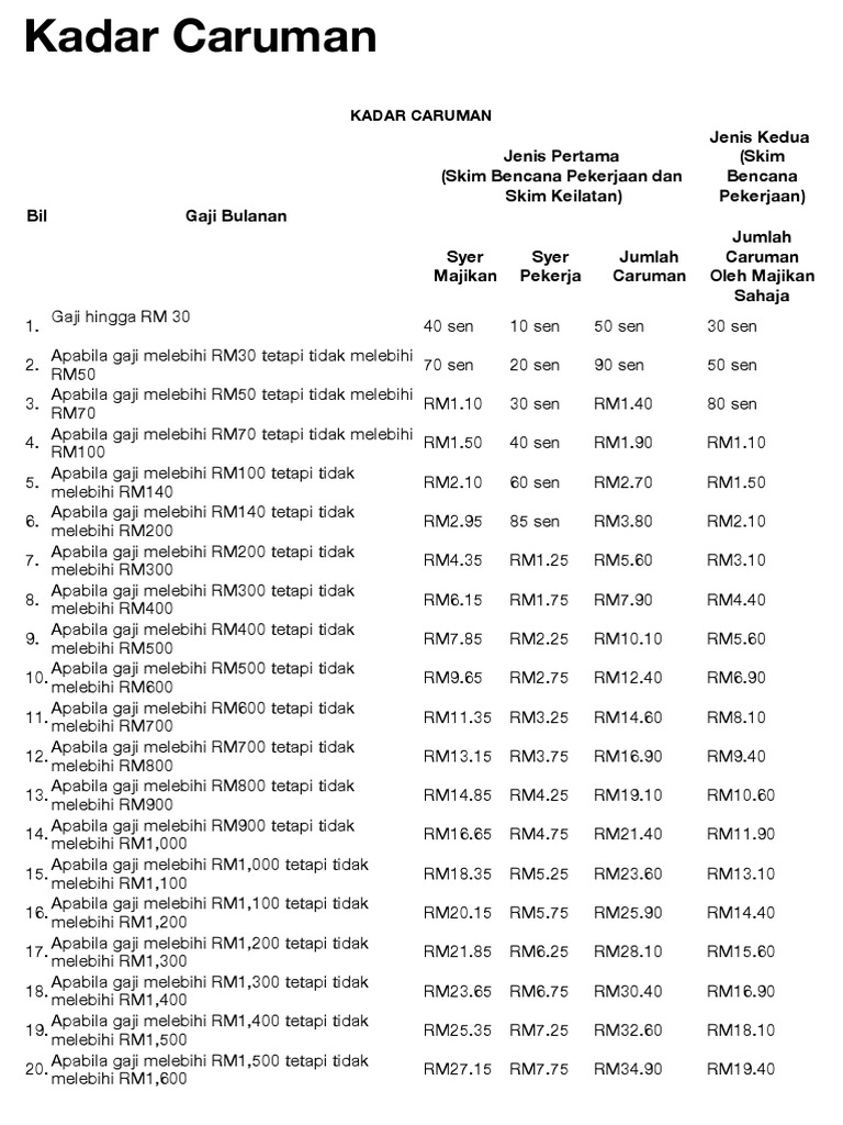 Bahagian d (1) kadar caruman bulanan yang dinyatakan dalam bahagian ini hendaklah terpakai bagi pekerja bukan warganegara malaysia. Jika anda membuat caruman perkeso, terdapat beberapa faedah yang boleh anda terima iaitu Jadual 3.7 senarai universiti yang menerima dividen pada tahun 2018 dan 2017. Free unlimited pdf search and download. Jadual tarikh pembayaran perkeso 2021 (bulanan).